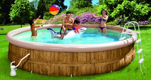 - Größe ca. 350x90cm, Stahlgestänge, 1.200 Literpumpe 12 V, 3-stufige Einstiegsleiter, besonders stabiler und formschöner Großraumpool mit vielen praktischen Extras:die stabile Addeckplane ist per Reißverschluß verschließbar, so dass der Pool stets sauber bleibt. Mit einem handelsüblichen Schloss kann der Pool kindersicher verschlossen werden. Mit leistungsfähiger 12-V-Filterpumpe, Wasserzirkulation-& Filterung, Stahlgestänge aus rostfreiem Metall zur einfachen Montage, extrem strapazierfähige 3- lagige Spezialfolie aus verstärktem PVC-Material, geeignet für wiederholten Aufbau bei trockener und kühler Lagerung, Größenangabe entspricht dem nutzbaren Bereich ( keine Verjüngung nach oben, wie bei Quick-Up-Pools), Wasserfüllmenge: 7.500 Liter