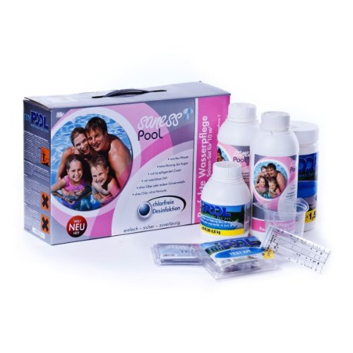 Das SANESS POOL Komplettset von MyPool ist die Revolution der Wasserpflege! Sie ist speziell für den Einsatz in Frei- und Hallenbädernl konzipiert: einfach, sicher und zuverlässig. Die Pflegephasen 1 und 2 werden zu gleichen Teilen über den Skimmer bzw. direkt dem Wasser zugegeben. Die Wirkstoffe reichen für einen Poolinhalt von 10m_ und ca. 5 Monate! Eine Nachdosierung ist nur bei außergewöhnlicher Wasserbelastung und entsprechend der Frischwassernachspeisung notwendig!Das SANESS-System von MyPool ist die neue Generation für umfassende, sichere Wasserpflege mit minimalem Pflegeaufwand:- OHNE CHLOR- OHNE OXIDANTEN- OHNE SILBER UND ANDERE SCHWERMETALLEDas System ersetzt alle herkömmlichen Wasserpflegemittel (nur der pH-Wert sollte weiterhin gemessen und ggf. korrigiert werden!).WASSERDESINFETION:Keime und Bakterien werden schnell und nachhaltig inaktiviertALGENSCHUTZ:Algenwachstum wird verhindertFLOCKUNG:Wassertrübungen werden entfernt. Auch für Kartuschenfilter geeignet!HÂ?...